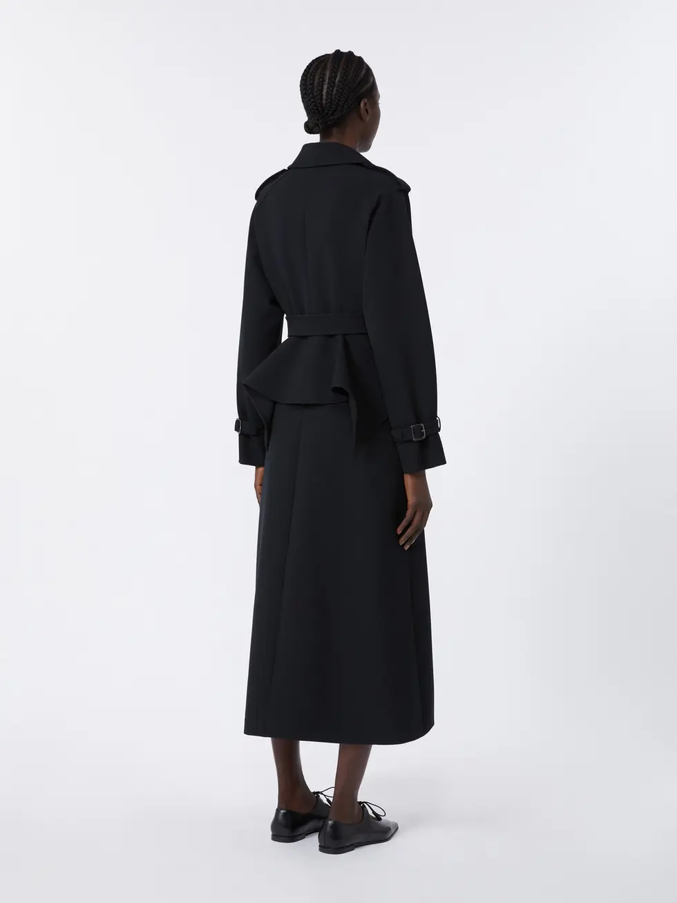 Gabardina larga con cierre cruzado de doble botón. Modelo acampanado con detalles icónicos.